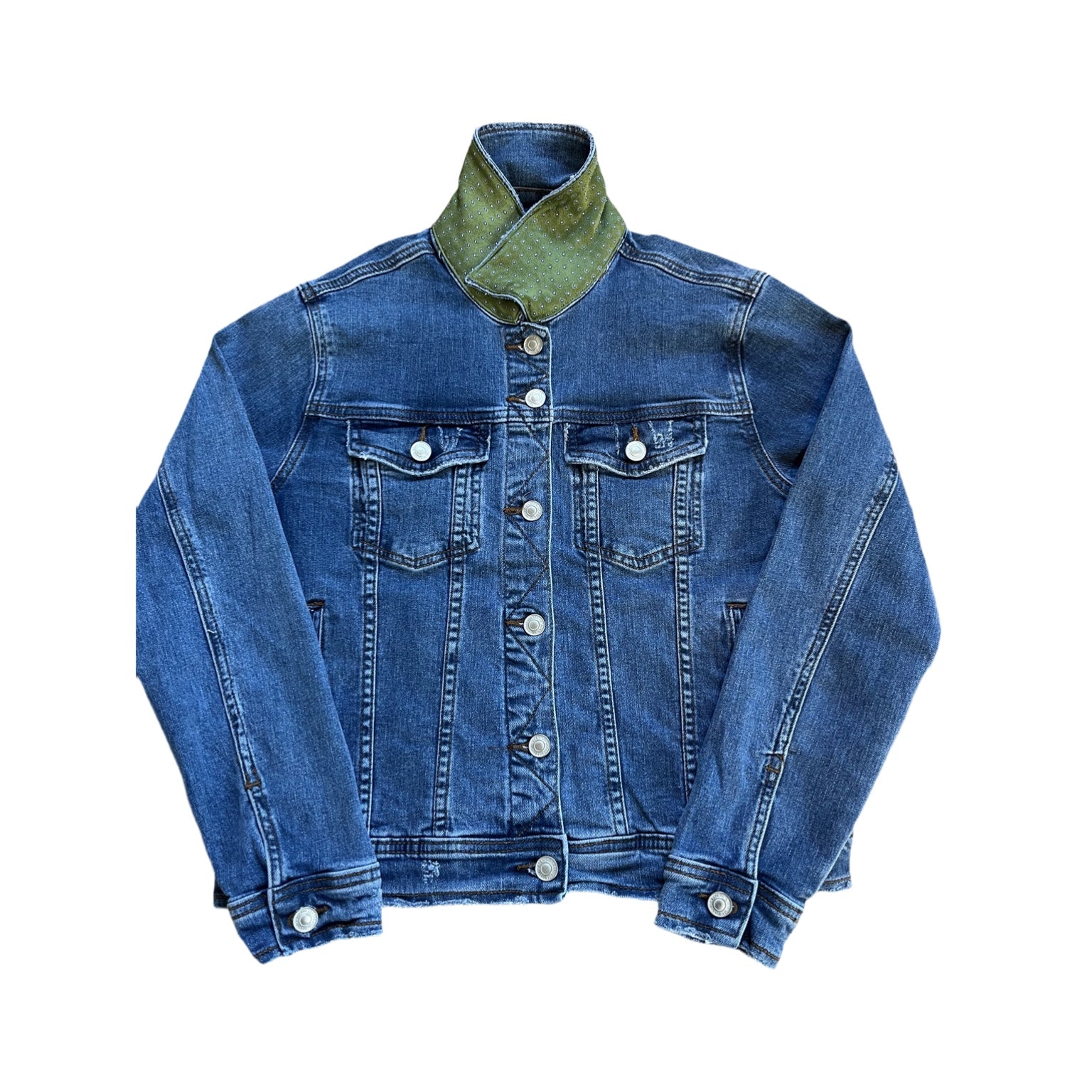 Size Medium jacket. Soft denim with a classic fit. Not too fitted.
