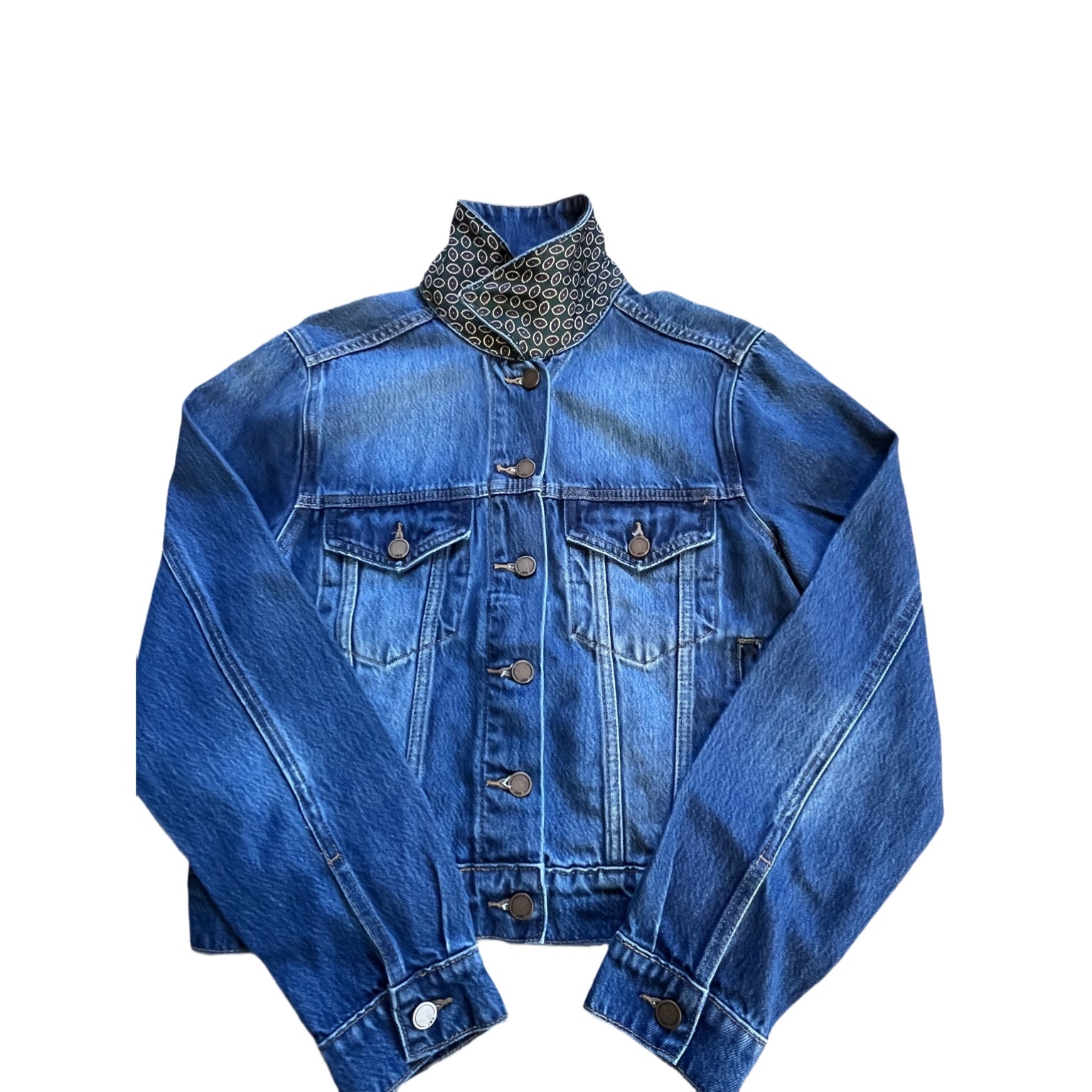 Size Medium jacket. Soft denim with a classic fit. Not too fitted.