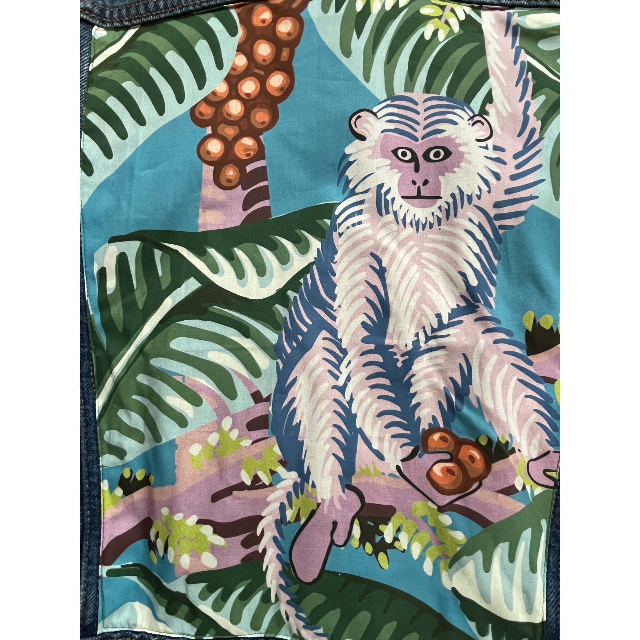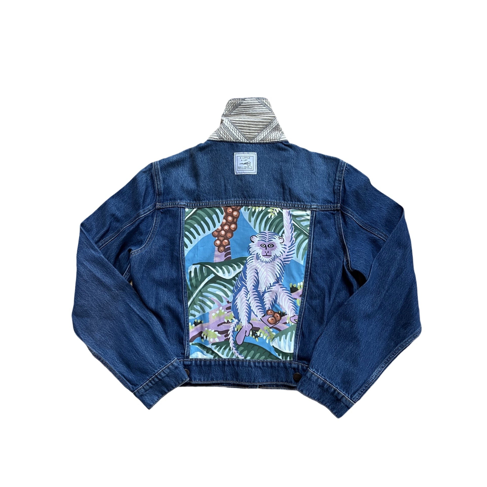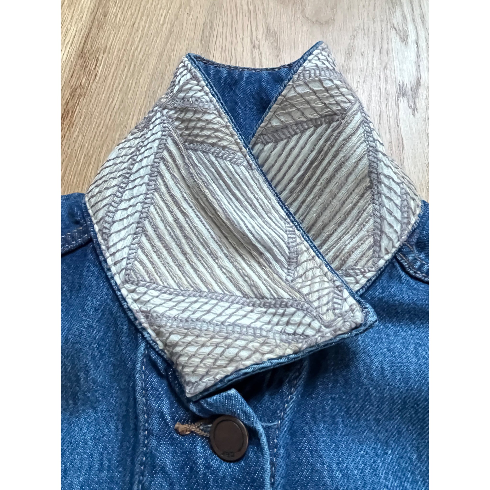 Size Large jacket is soft and has a classic fit. Not too fitted.